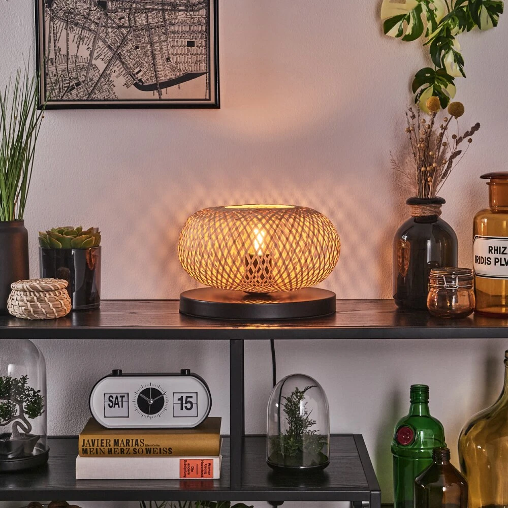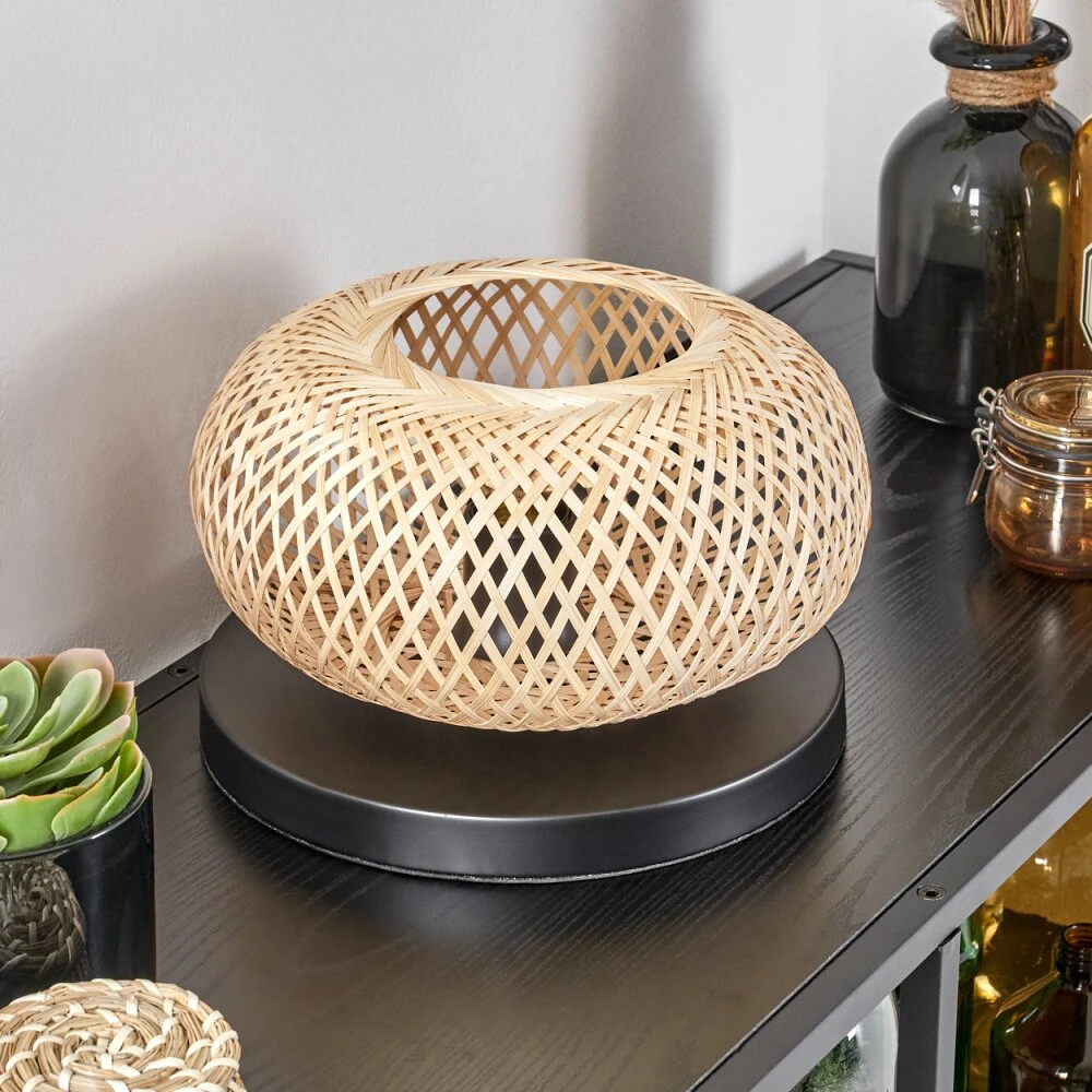 - Besonderheiten: Diese Tischleuchte verfügt über einen An-/Ausschalter am Kabel. Die Länge des Kabels beträgt 158 cm. Durch den Schirm wird ein Lichteffekt an der Wand erzeugt.