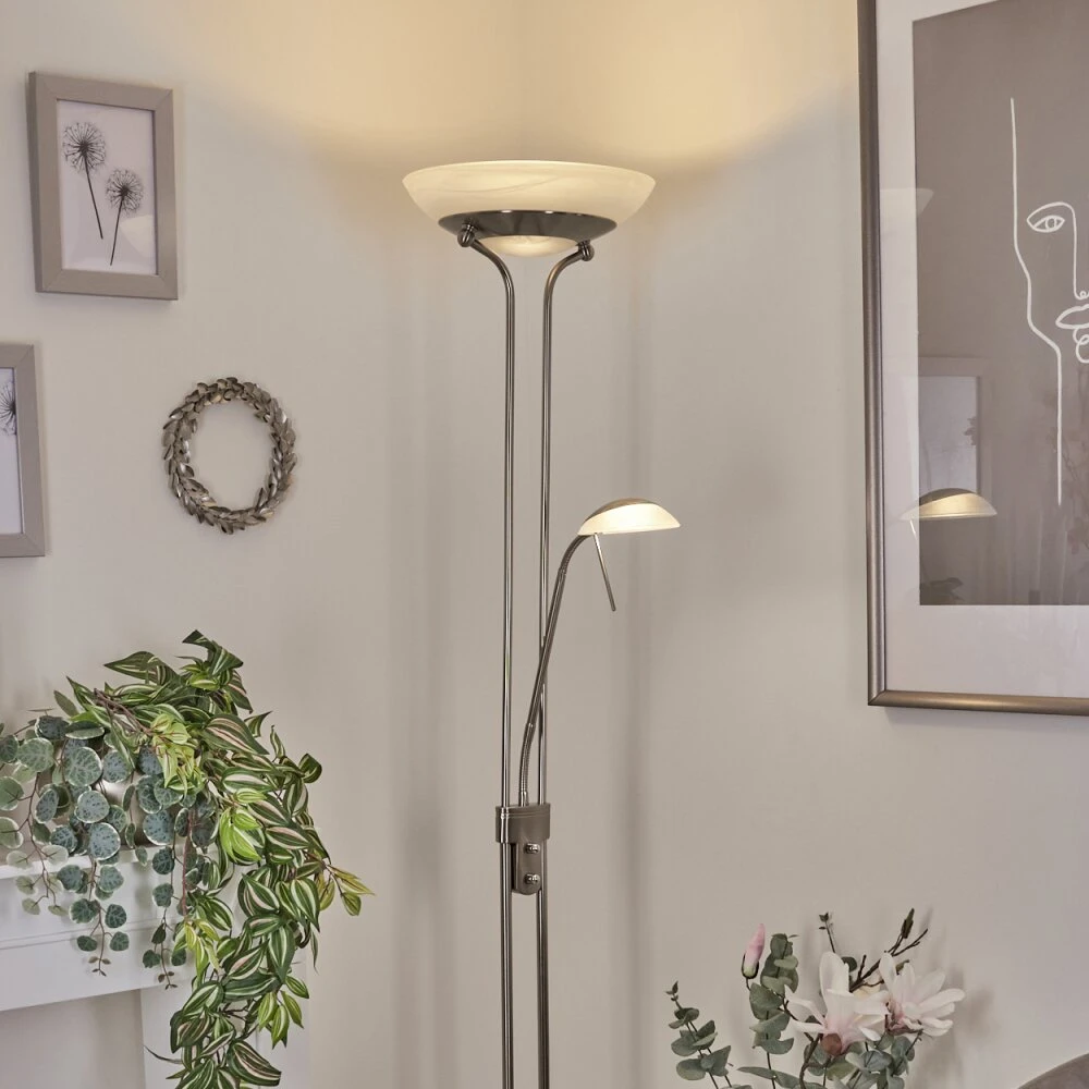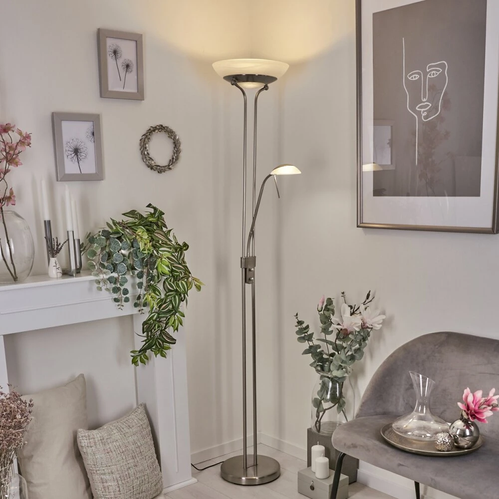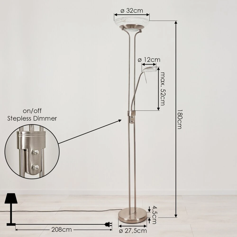 - Diese Stehleuchte verfügt über einen An-/Ausschalter am Gehäuse, mit welchem Sie sich stufenlos dimmen lässt.