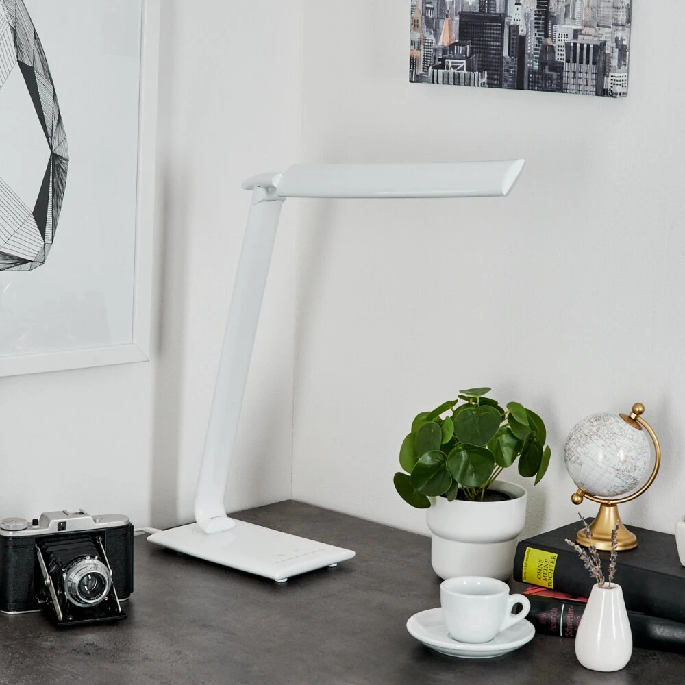 - Diese Tischleuchte verfügt über einen Tastdimmer. Mit diesem kann die Helligkeit sowie die Lichtfarbe gedimmt werden.
