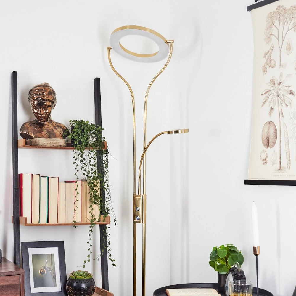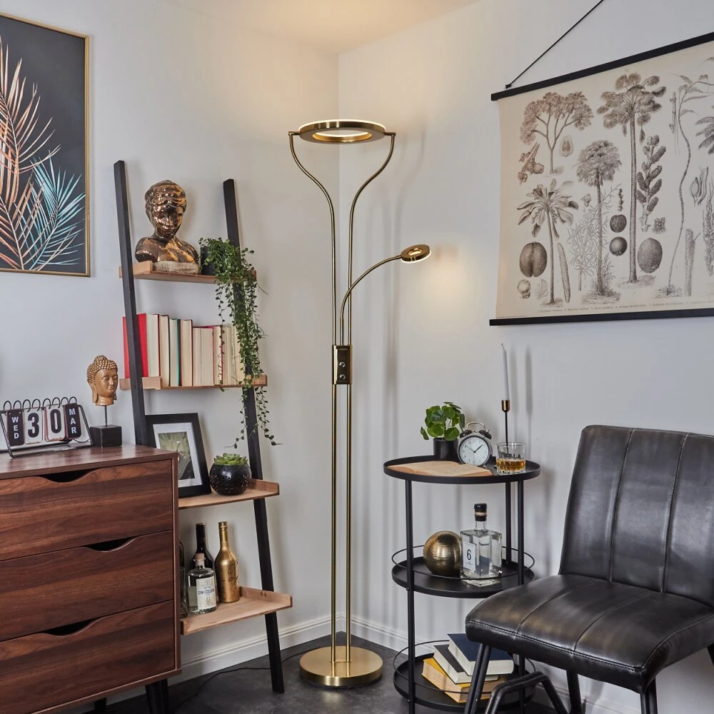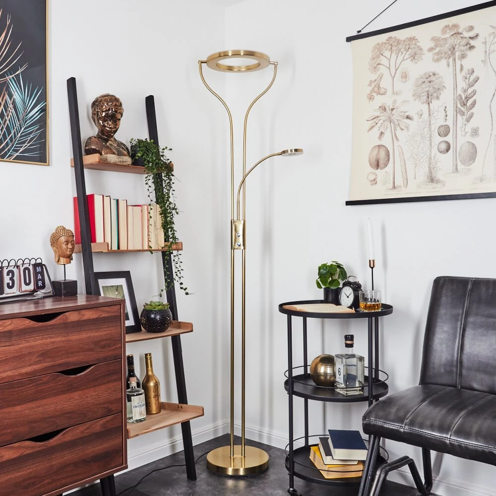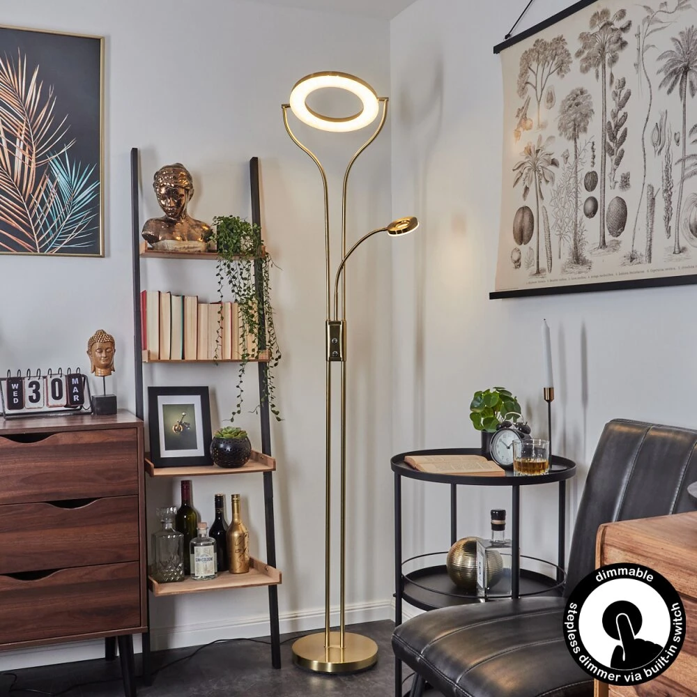 Diese Stehleuchte verfügt über einen An-/Ausschalter am Gehäuse, sowie einen Tastdimmer.