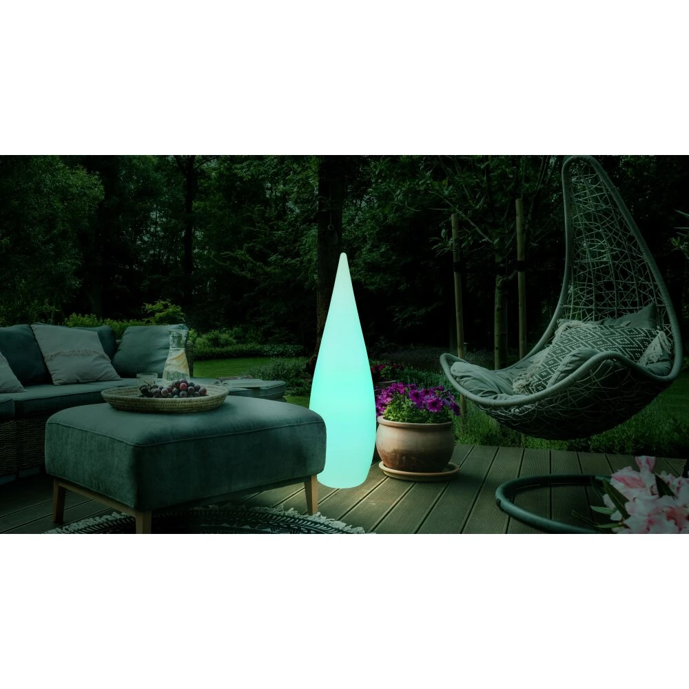 - Die tropfenförmige Außenleuchte AUßENLEUCHTE KUNSTSTOFF OPAL vereint modernes Design und vielseitige Funktionen. Hergestellt aus opal-weißem Kunststoff, fügt sich diese Leuchte nahtlos in jeden Außenbereich ein. Sie kommt inklusive einer E27 RGBW LED mit einer Leistung von 750 Lumen und einem Durchmesser von 360 mm. Die Leuchte ist dimmbar und verfügt über eine Fernbedienung, mit der Sie den Farbwechsel und die Fixierung der Farben steuern können. Zusätzlich bietet sie eine Memoryfunktion und ein Nachtlicht. Die AUßENLEUCHTE KUNSTSTOFF OPAL ist kompatibel mit Smart Home Systemen und ermöglicht so eine bequeme Steuerung. Mit dem RGB Farbwechsel können Sie die Beleuchtung nach Ihren Wünschen anpassen und eine individuelle Atmosphäre schaffen. Der mitgelieferte Erdspieß erleichtert die Befestigung und sorgt für sicheren Halt im Außenbereich. Dank der Schutzklasse IP44 ist die Leuchte spritzwassergeschützt und somit ideal für den Einsatz im Garten, auf Terrassen oder Wegen geeignet.