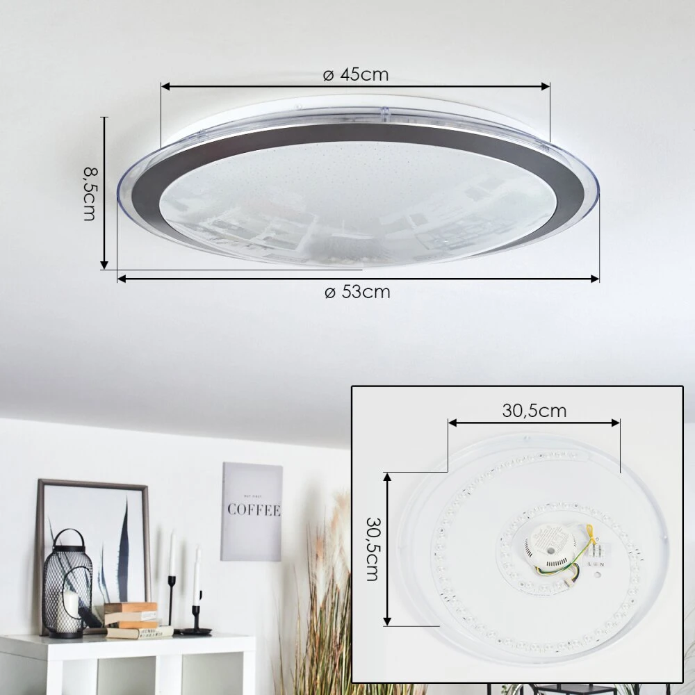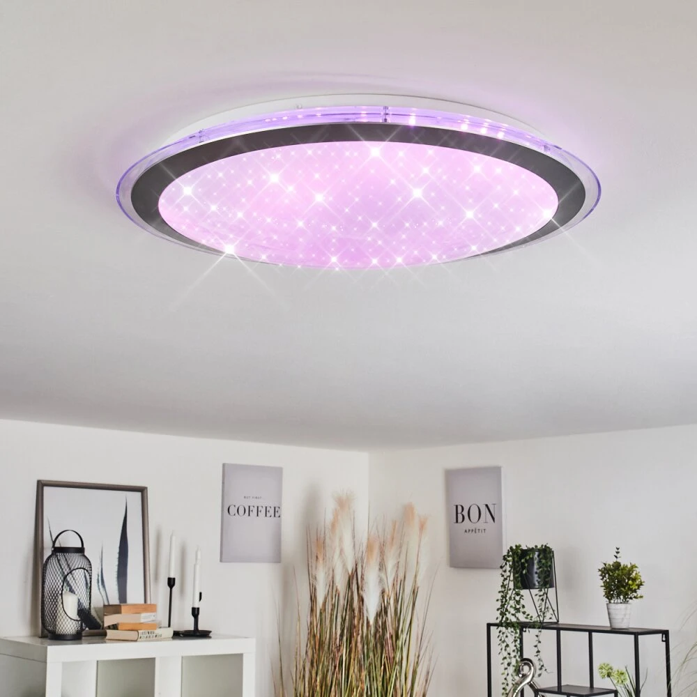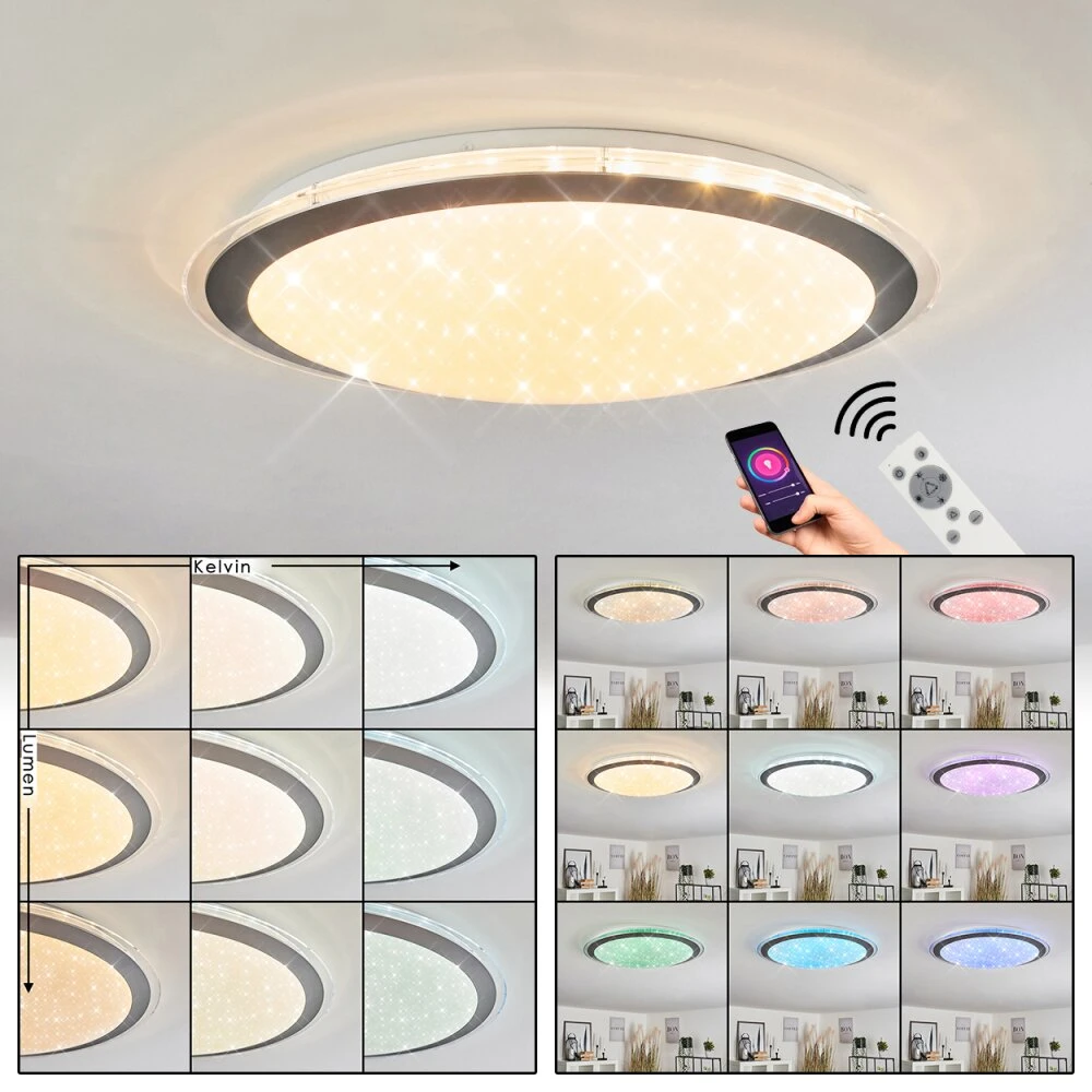 - Über eine beiliegenden Fernbedienung, sowie eine Smart App auf dem Smartphone können die weißen und RGB LEDs beliebig angesteuert werden.