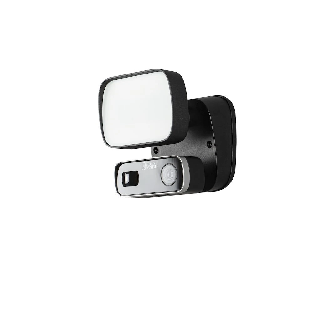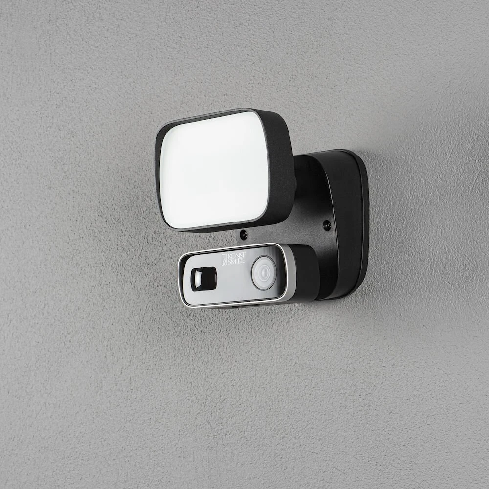 - High Power LED HD Kamera Wandleuchte – klein; Eingebauter Bewegungssensor; Zwei-Wege-Kommunikation; Bewegungsaktivierte Warnungen; 1080HD Weitwinkelkamera; Infrarot Nachtsichtmodus; Speicherung der Aufzeichnung auf wechselbarer SD Karte; Einstellbarer Abstrahlwinkel; 1000 Lumen; einfach Montage / Montageplatte mit Wasserwaage und für Auf – und Unterputzkabel; hochwertige Materialien und Verarbeitung; Wifi Anbindung über proprietäre und kostenlose Konstsmide – kein Abo oder Folgekosten; App für iOS oder Android Geräten