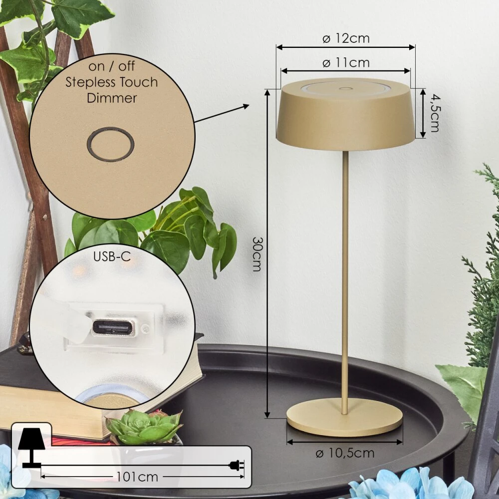 - Besonderheiten: Die mobile Tischleuchte wird über ein USB-C-Anschluss aufgeladen und kann dank des Akkubetriebs an einer von Ihnen ausgewählte Position ganz ohne Kabel eingesetzt werden.