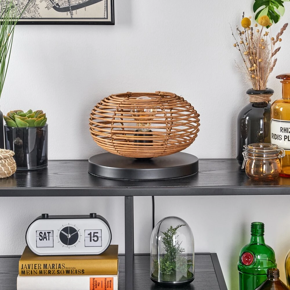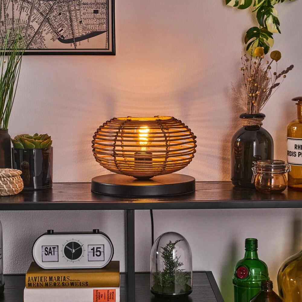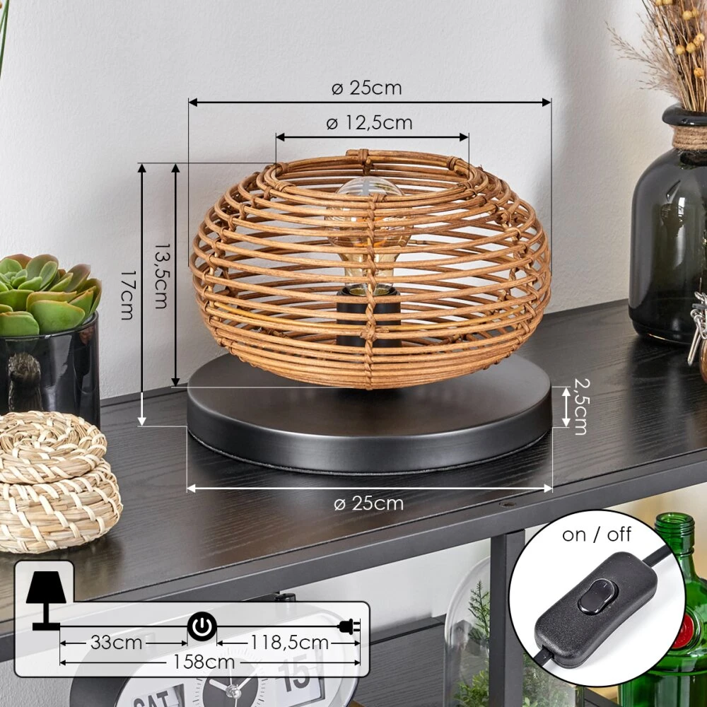 - Besonderheiten: Diese Tischleuchte verfügt über einen An-/Ausschalter am Kabel. Die Länge des Kabels beträgt 158 cm. Durch den Schirm wird ein Lichteffekt an der Wand erzeugt.