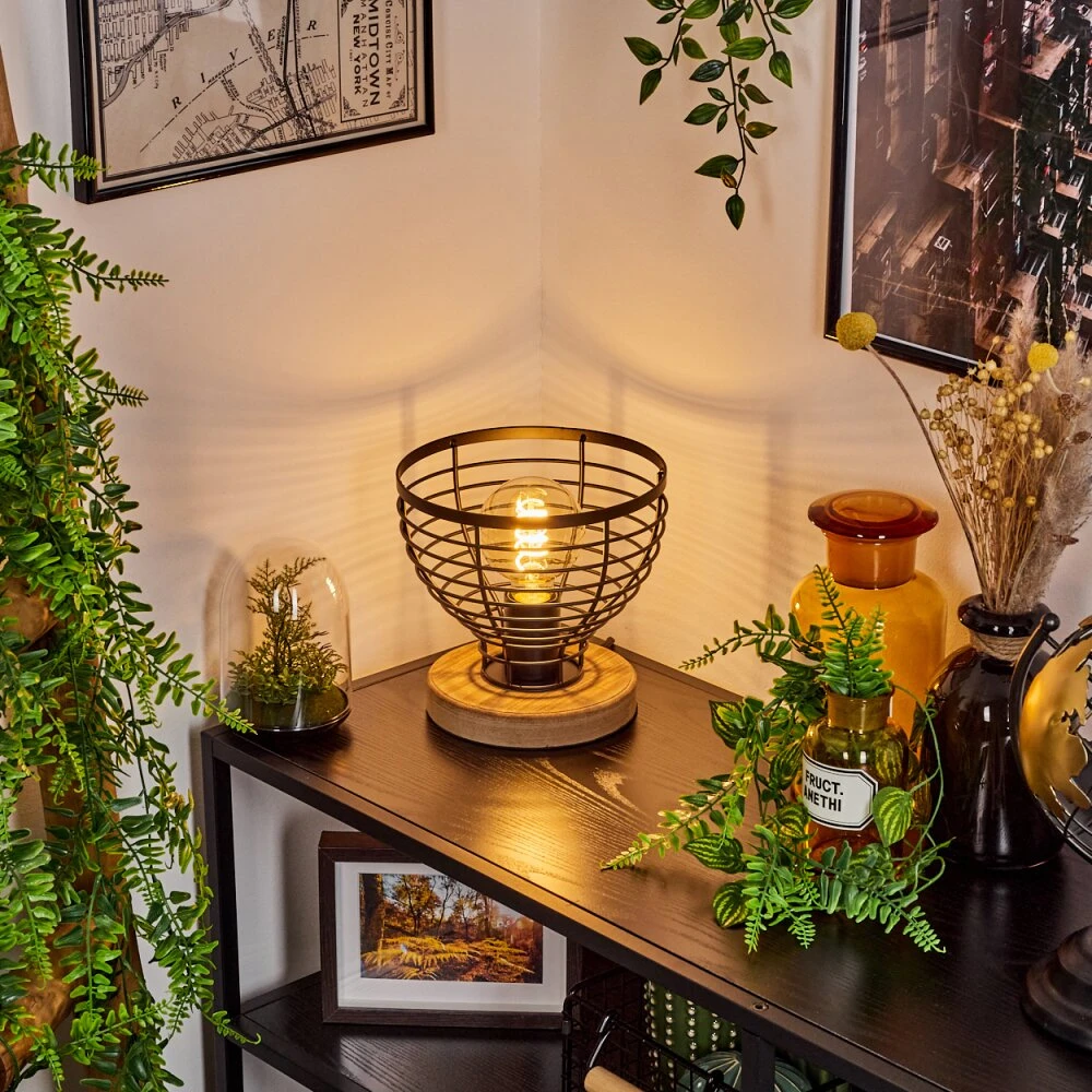 Durch den Schirm wird ein Lichteffekt auf dem Tisch und an der Wand erzeugt.