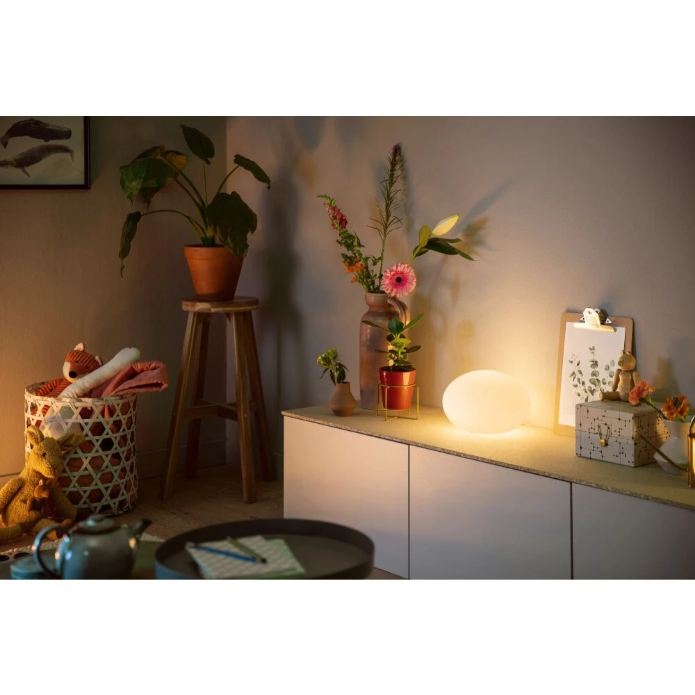 Dekorative Tischleuchte mit integriertem LED Modul aus hochwertigem Glas für den Wohnraum, Spielen Sie mit Licht und wählen Sie eine aus 16 Millionen Farben in der Hue App passend zu Ihrer Stimmung, Synchronisieren Sie Ihr Licht mit Musik/ Filmen und Spielen, Speziell designt für maximalen Lichteffekt, E27 WACA Lampe im Lieferumfang enthalten; Steuerung über Bluetooth und Bridge