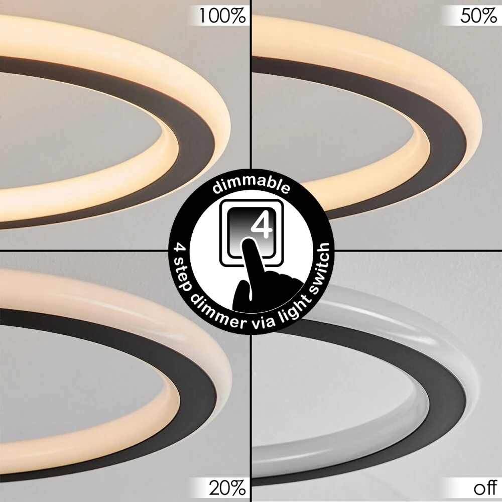 - Diese Leuchte ist mithilfe eines herkömmlichen Lichtschalters in drei Stufen dimmbar. Es ist kein zusätzliches Zubehör nötig.