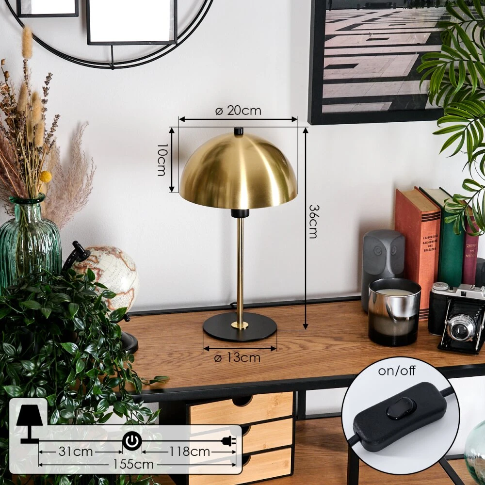 - Besonderheiten: Diese Tischleuchte verfügt über einen An-/Ausschalter am Kabel. Die Länge des Kabels beträgt 155 cm.