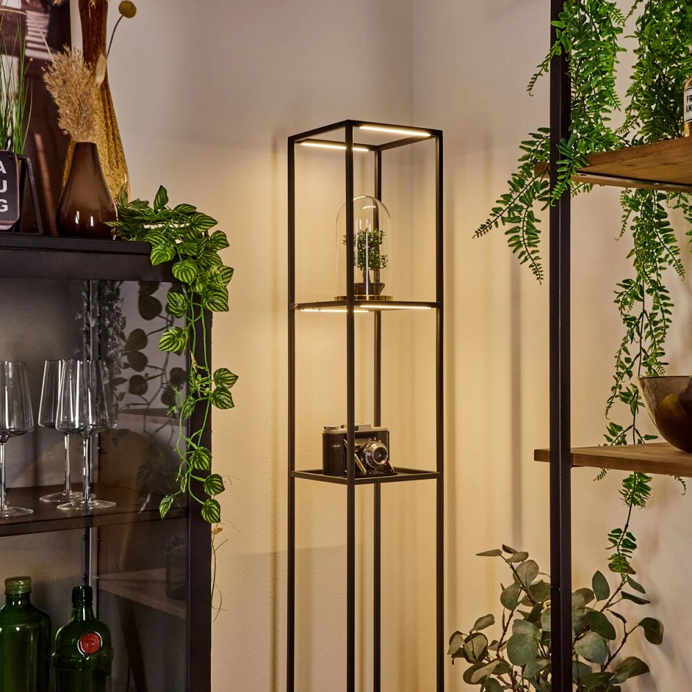 Die Leuchte dient gleichzeitig als Ablagefläche für Pflanzen oder Deko.