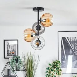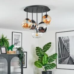 Koyoto Deckenleuchte Glas 15 Cm Bernsteinfarben, Chrom, Klar, Rauchfarben, 5-flammig
