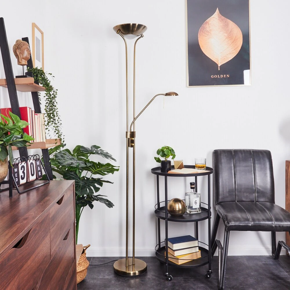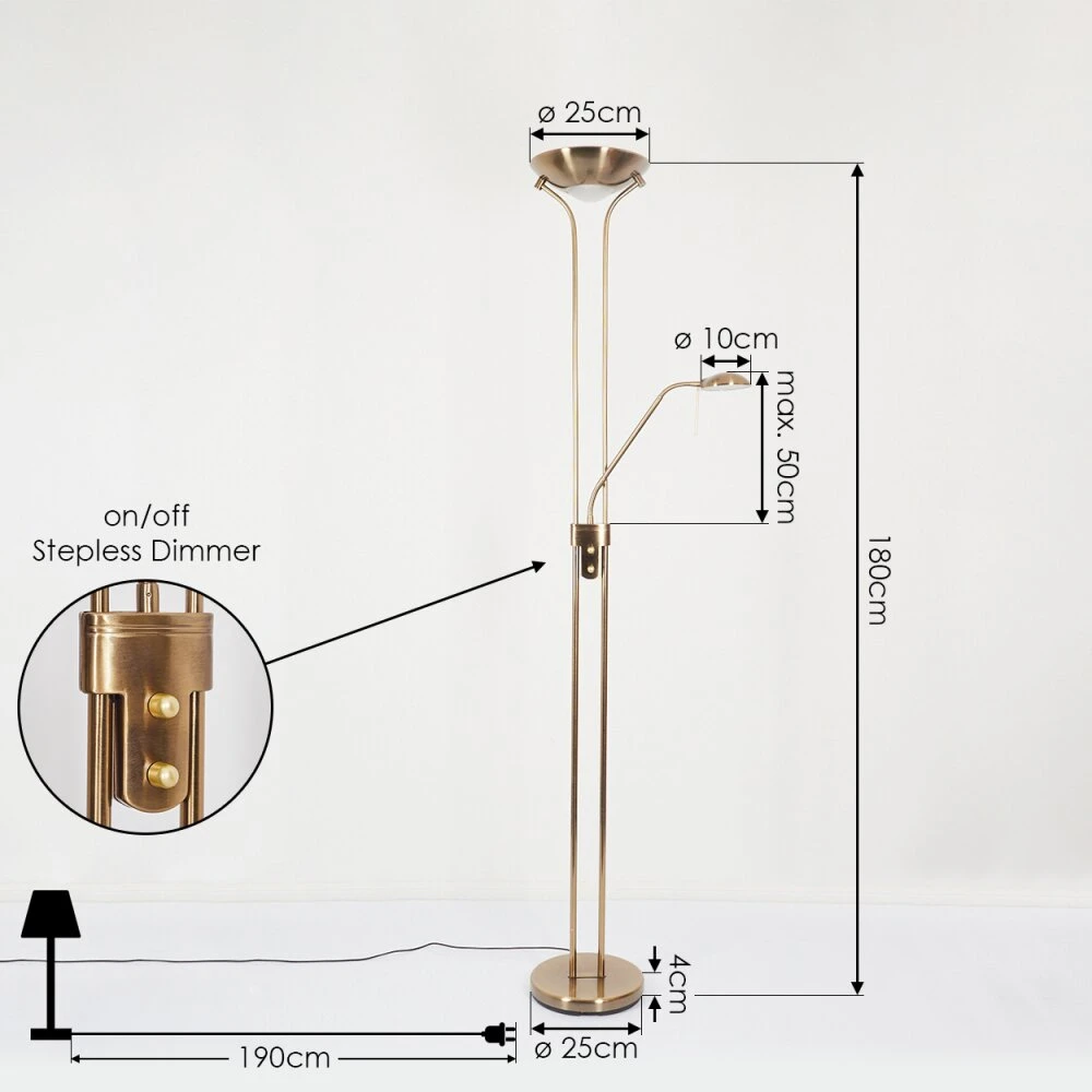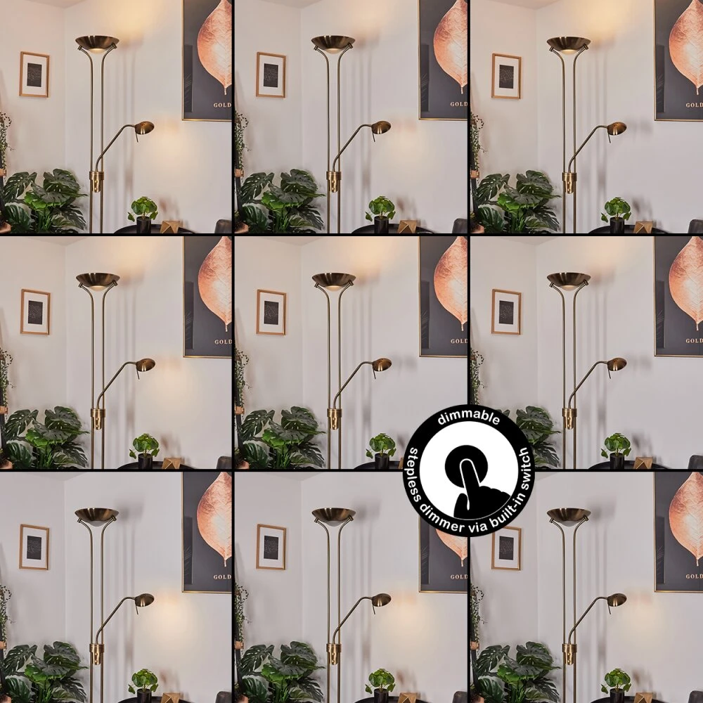Diese Stehleuchte verfügt über einen An-/Ausschalter am Gehäuse, sowie einen Tastdimmer.