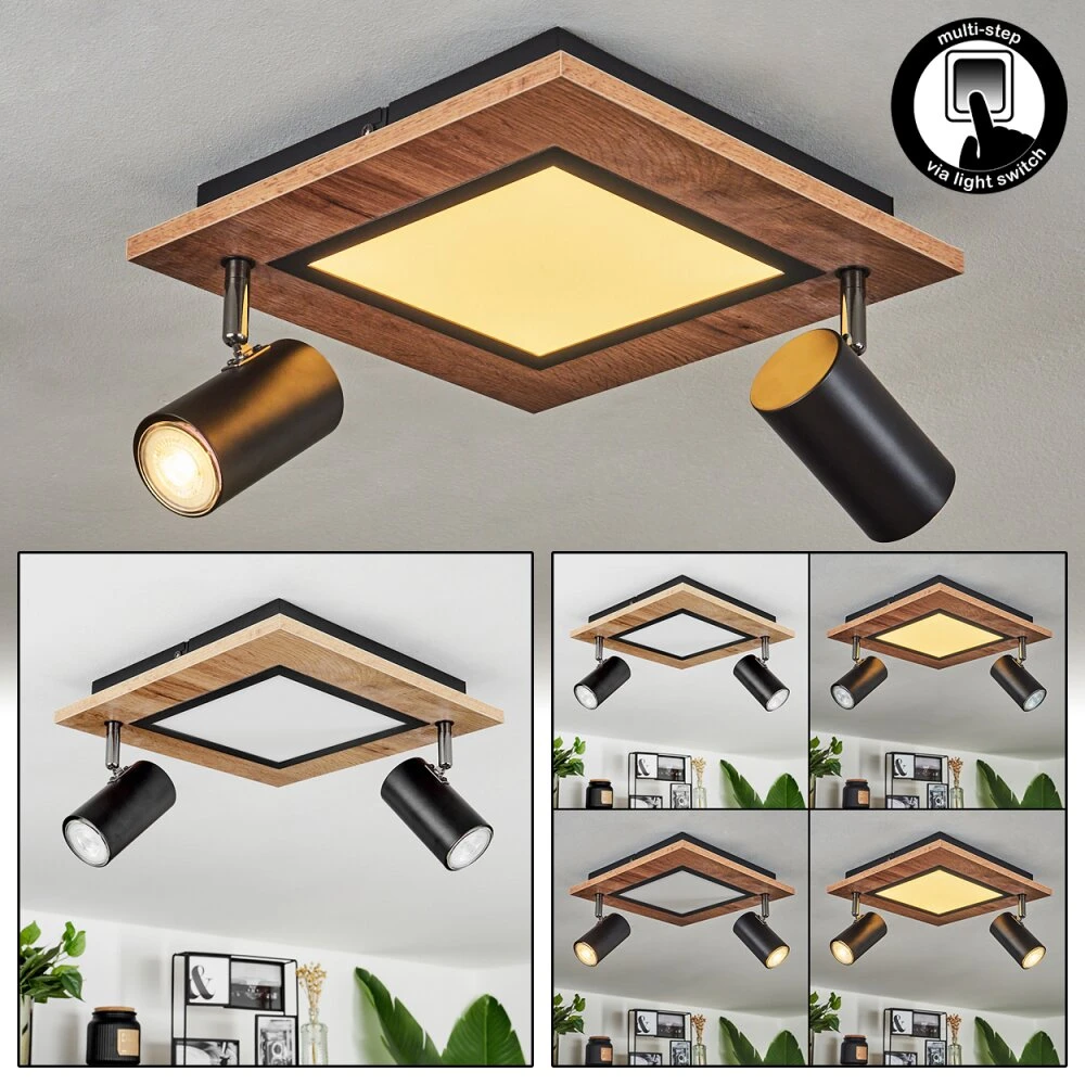 - Mithilfe eines herkömmlichen Lichtschalters sind die jeweiligen LED Leuchten unabhängig voneinander an- und auszuschalten. Stufe 1: LED, Stufe 2: GU10, Stufe 3: beide zusammen. Inklusive LED 12W, 1200lm Source, 780lm Output, 3000K, exklusive 2x GU10 LED 5W